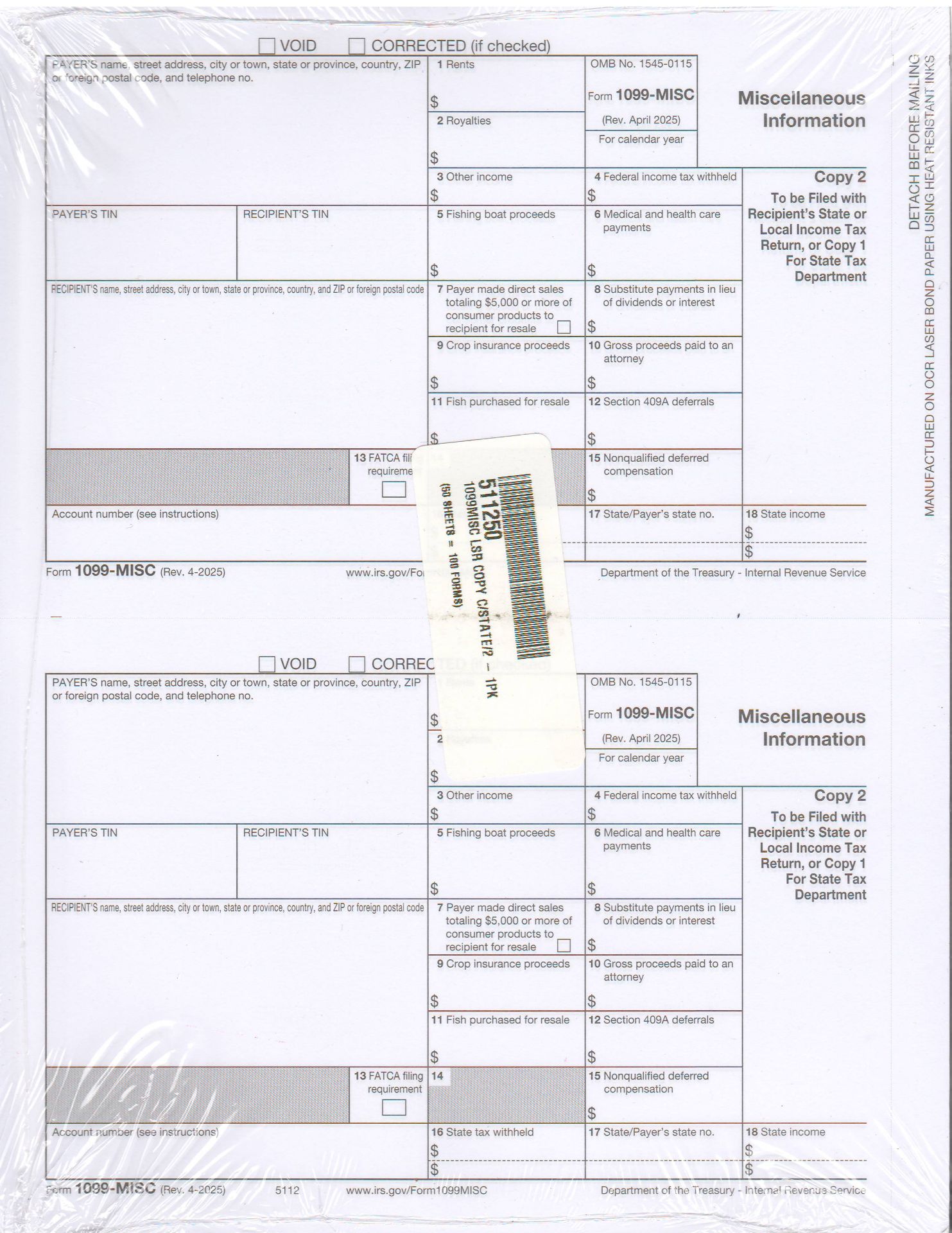 1 Unit = 100 Forms (50 Sheets 2-Up)