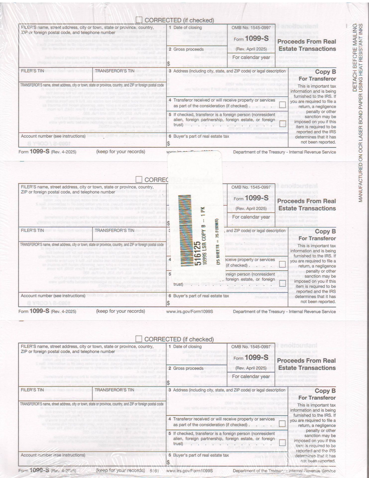5160-1 | 1099-S Federal Copy A (Red) 3-Up Format