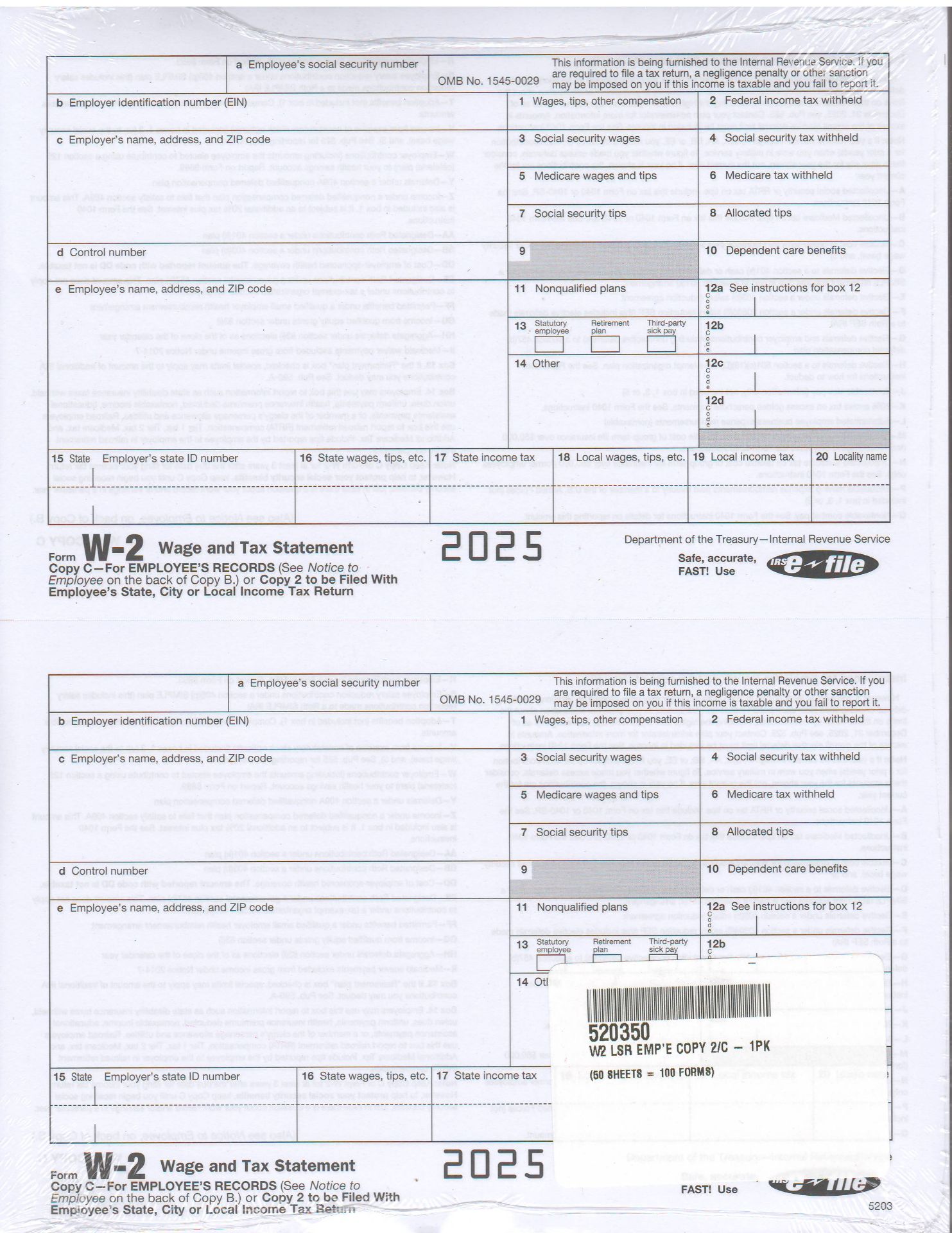 W-2 DOUBLE WINDOW ENVELOPES (FITS 2-UP FORM FORMAT)
