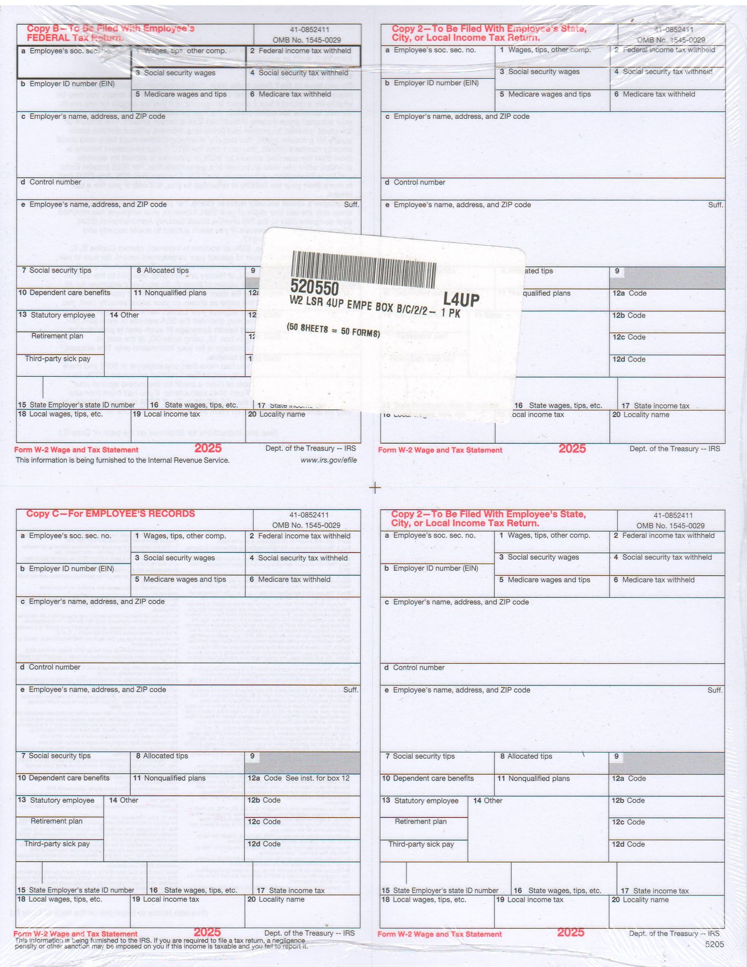 W-2 DOUBLE WINDOW ENVELOPES (FITS 4-SQUARE FORM FORMAT)