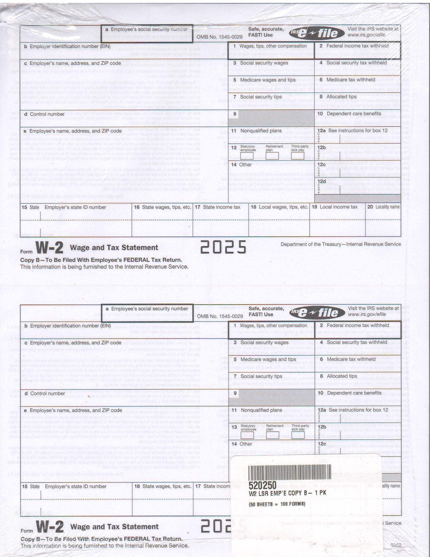 W-2 DOUBLE WINDOW ENVELOPES (FITS 2-UP FORM FORMAT)